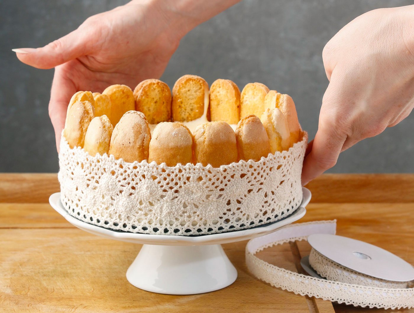 - Capovolgere delicatamente la charlotte su un piatto da portata ed eliminare la carta da forno.