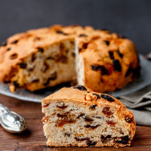 Imburrate e infarinate abbondantemente una teglia da forno (preferibilmente uno stampo da panettone da 18-20 cm di diametro).