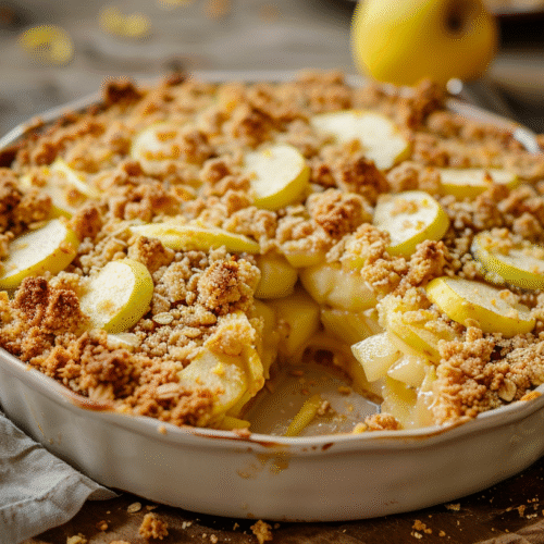 Distribuite il crumble uniformemente sulla superficie delle mele, coprendole completamente. Infornate nel ripiano centrale del forno per 25-30 minuti, fino a quando il crumble risulterà dorato e croccante.