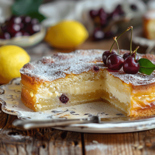 Preriscaldate il forno a 220°C. Versate il ripieno sulla base di pasta frolla e disponete le ciliegine candite lungo il bordo.